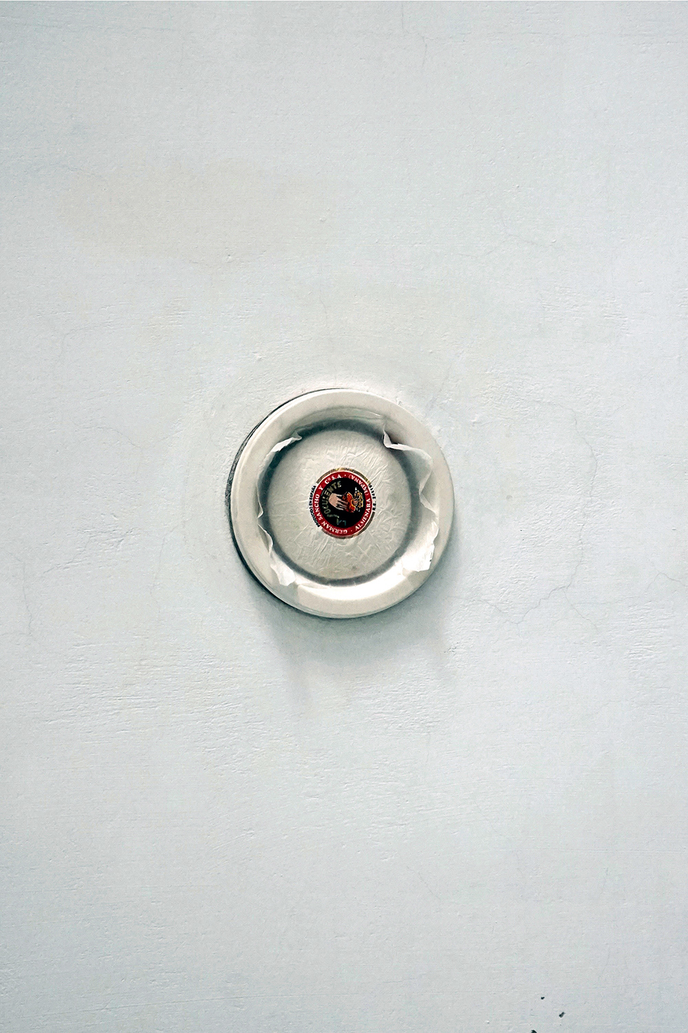 Orange press and orange wrapping placed on different outlets of the exhibition space ventilation system.