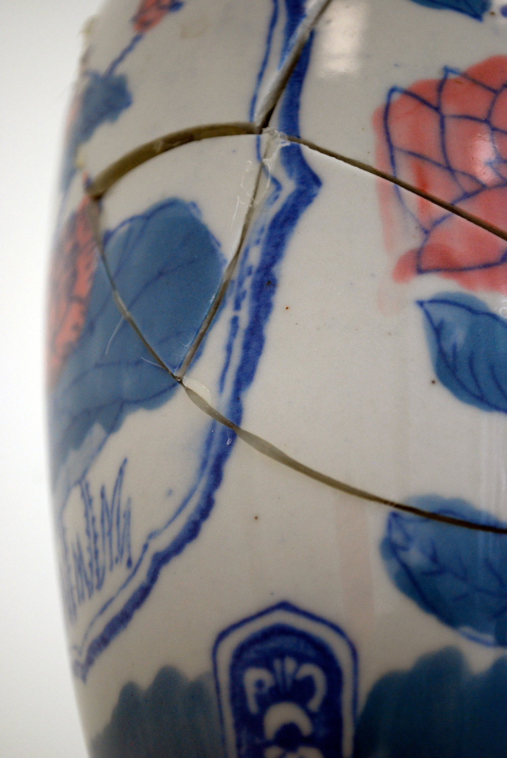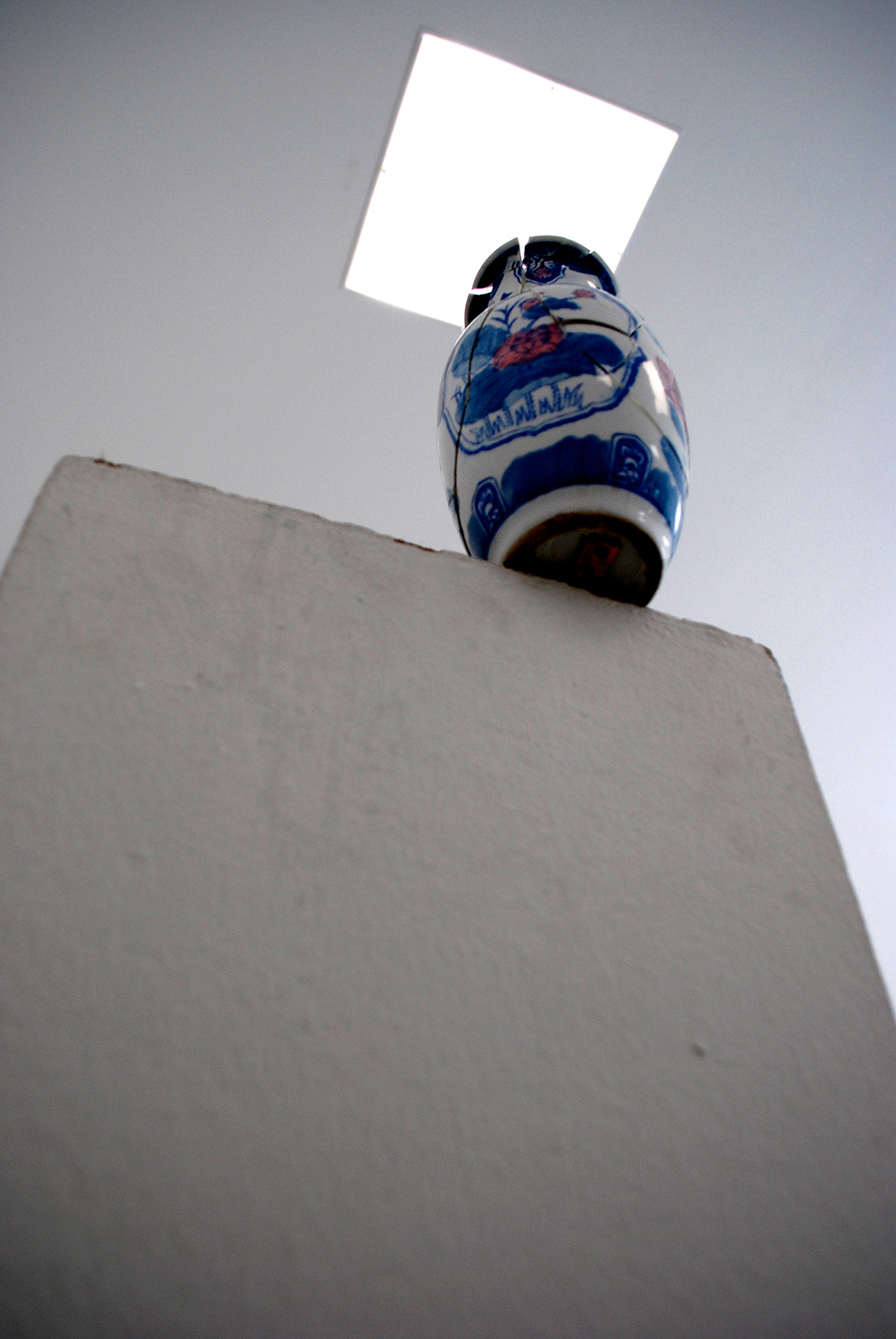 Plinth (turned upside down), Chinese vase (dimensions variable)