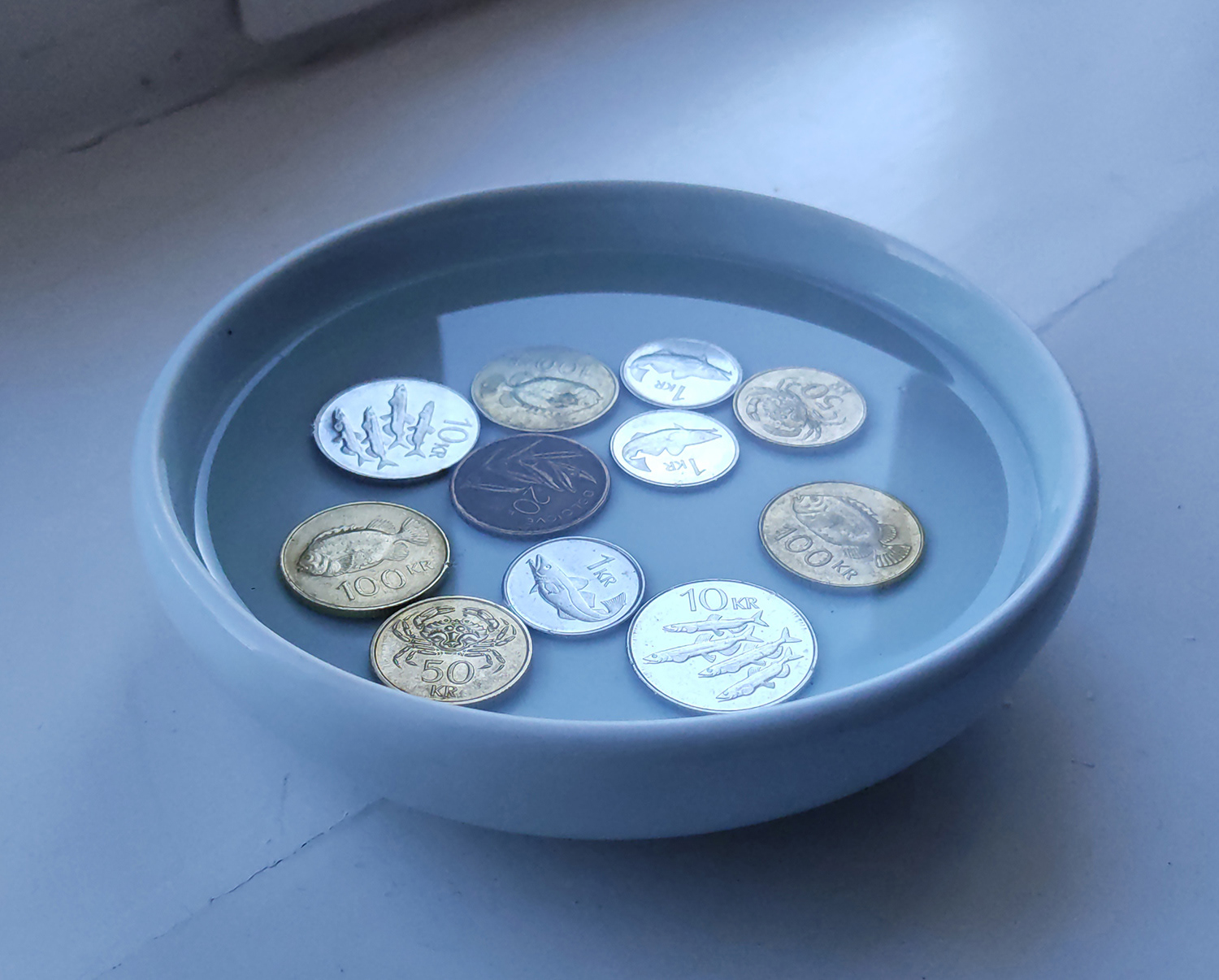 Jar, coins water (16 x 16 x 4 cm)